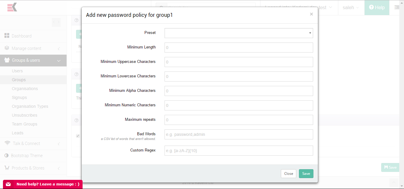 - Bad words - bad or restricted words whcih shouldn't be used in a password (e.g. like on screenshot)