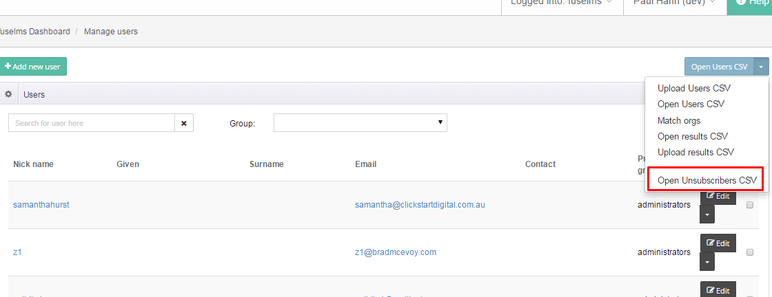 - You can also open a list of unsubscribers for analyze this data (it’s also a part of upper right drop-down controls)